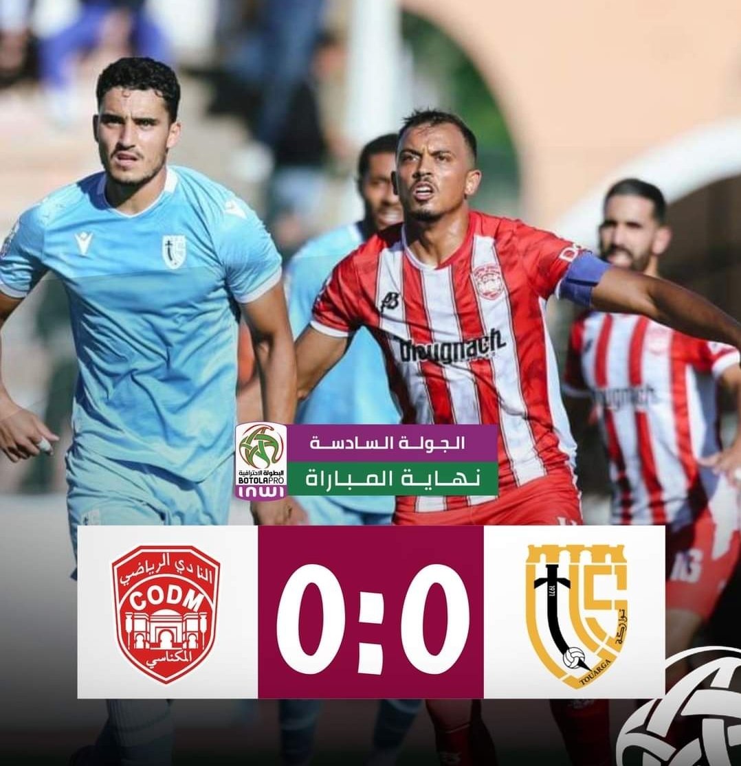 حسم التعادل السلبي (0-0) المواجهة التي جمعت بين اتحاد تواركة وضيفه النادي المكناسي، في إطار الجولة السادسة من البطولة الاحترافية “إنوي”.