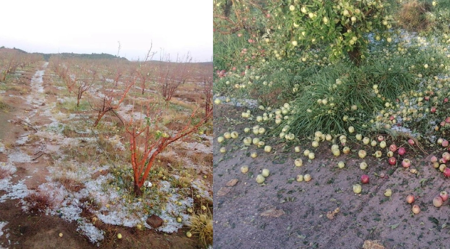 ومن بين أكثر المناطق المتضررة، كانت ضيعات التفاح في إقليم ميدلت، حيث أتلفت عاصفة برد قوية المحاصيل، مخلفة أضراراً كبيرة للمزارعين.