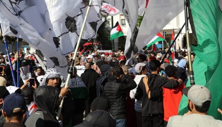 شهد شارع محمد الخامس بالرباط، اليوم الاحد مسيرة وطنية حاشدة دعما للشعب الفلسطيني الذي يتعرض لعدوان همجي غير مسبوق من طرف الجيش الإسرائيلي.شارك فيها آلاف المواطنين المغاربة.